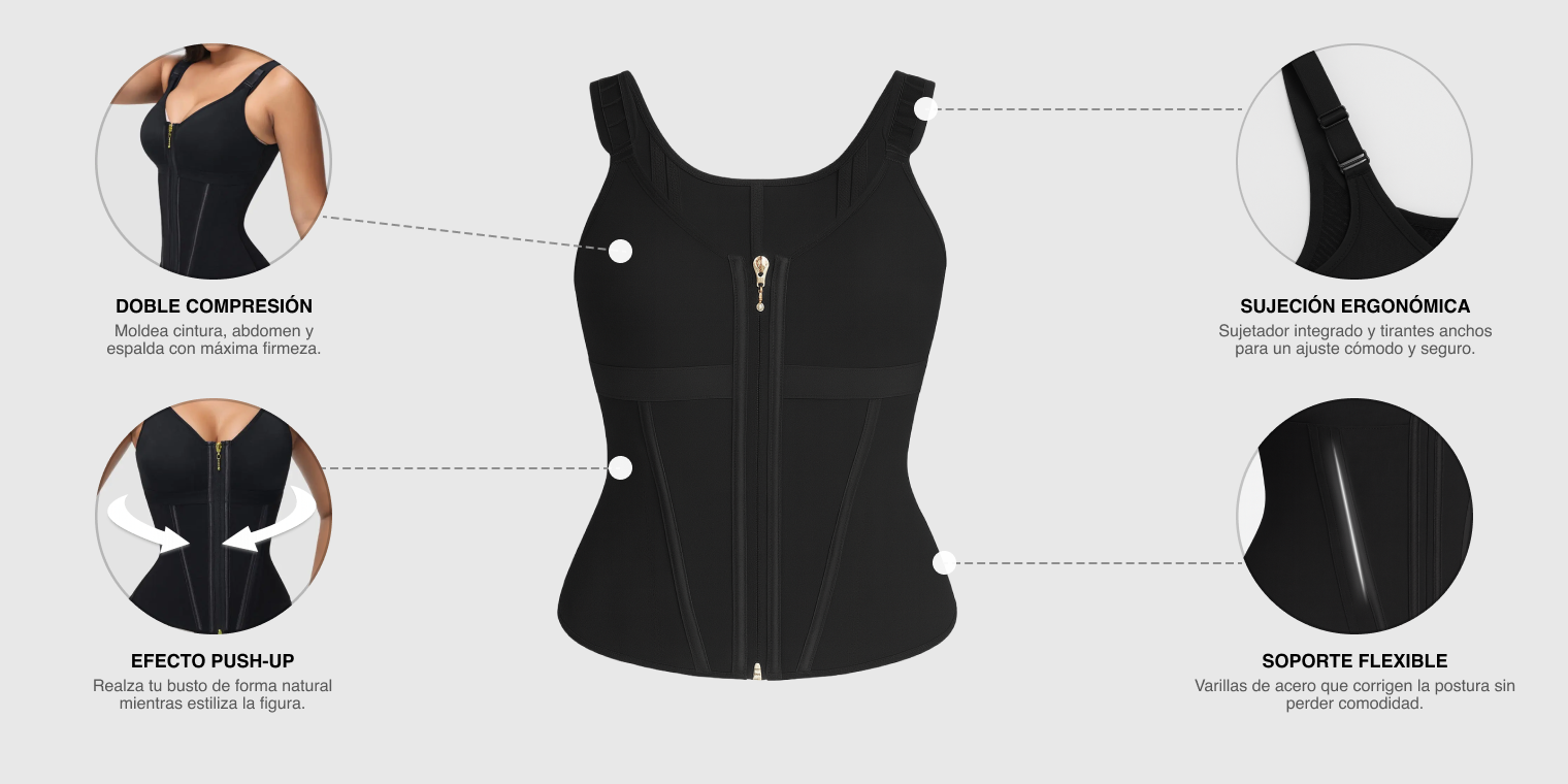 Faja moldeadora de cintura de doble capa con control de abdomen y sujetador
